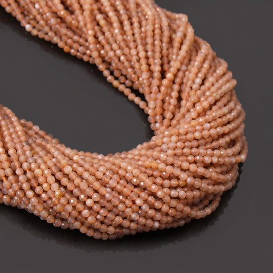 Natural Peach Moonstone Faceted Round Gemstone Beads Strand – Radiant Elegance