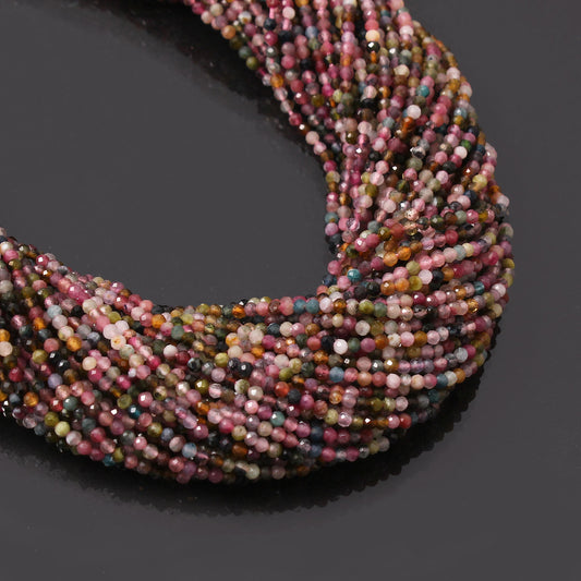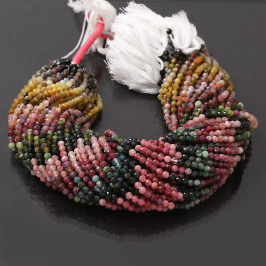 Natural Multi Tourmaline Micro Faceted Round Shape 2.5-3 mm Beads 12.5 Inches Long Strand