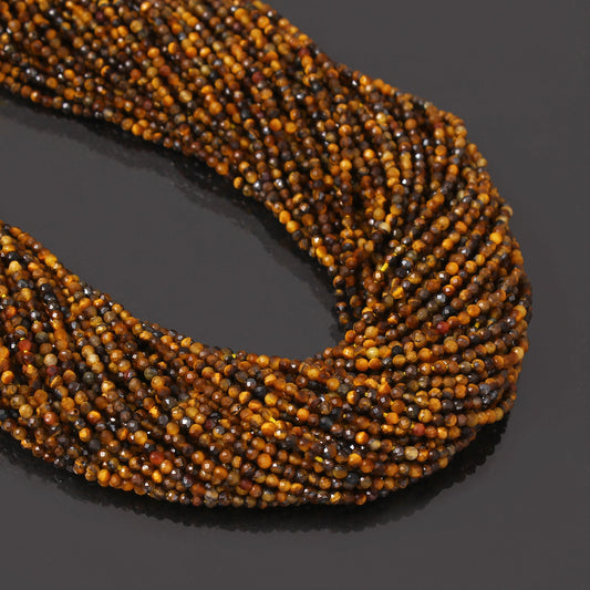 Natural Tiger Eye Micro Faceted Cut Tiny Gemstone 2.5-3 mm Beads - 12.5 inch Strand - Jewelry Supplies