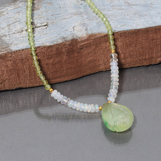 Natural Peridot And Ethiopian Opal Beads Necklace