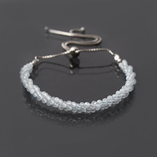Aquamarine Twist Layer Silver Bracelet ( Bolo Chain )