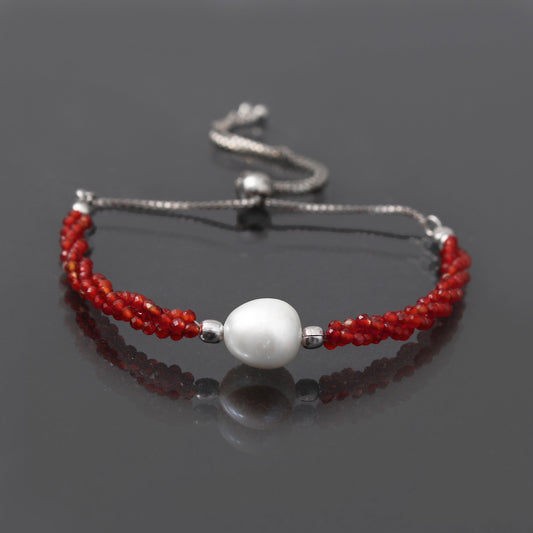 Carnelian/Pearl Twist Layer Silver Bracelet ( Bolo Chain )