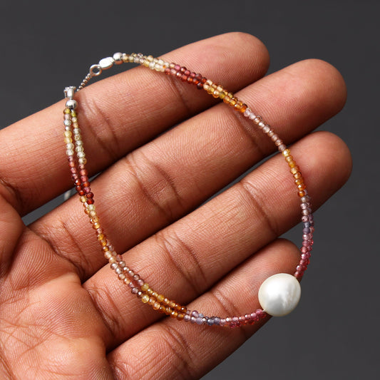 Multi Sapphire / Pearl Twist Layer Bracelet ( Bolo Chain )