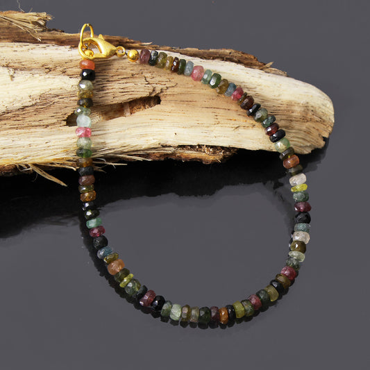 Multi Tourmaline beaded bracelet Natural Gemstone Silver Boy & Girl Bracelet .