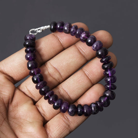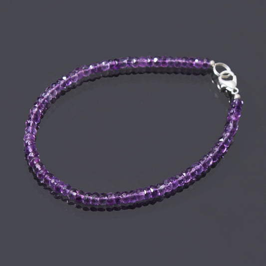 Natural Amethyst Beaded Bracelet/ February Birthstone Faceted Rondelle Beautiful Bracelet .