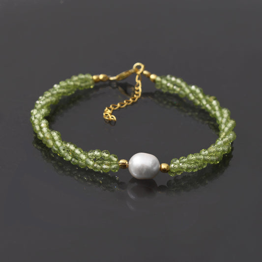 Peridot/Pearl Twist Layer Silver Bracelet ( Bolo Chain )