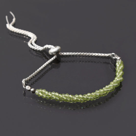 Peridot Twist Layer Silver Bracelet ( Bolo Chain)