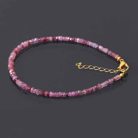 Pink sapphire beaded bracelet, handmade pink sapphire jewelry, Natural Silver Bracelet