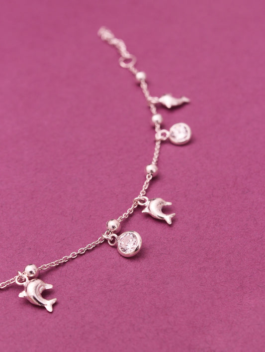 Dolphin & Charm Anklets Silver Bracelet , Beautiful Bracelet 925 Sterling Silver .