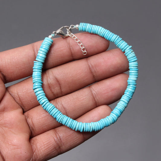 Blue Howlite Turquoise Gemstone Heishi Tyre Shape Memorable Bracelet With Silver Chain Lobster Lock