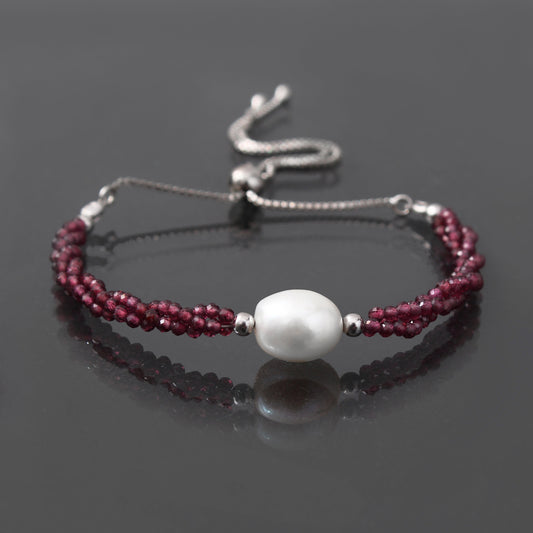Twist Rhodolite Garnet/ Pearl Bolo Chain Silver Bracelet