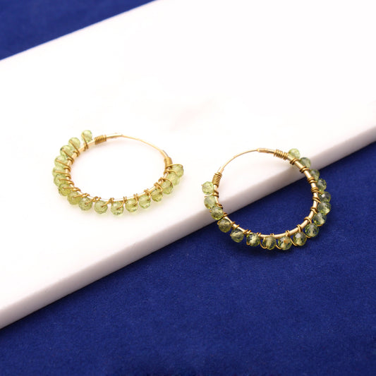 Chunky Natural Peridot Gemstone Hoops Earring Gold Plated Silver