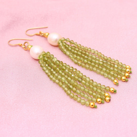 Luxurious Peridot and Pearl Dangle Earrings with Gold Finish