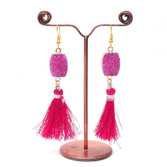 Sparkly Bubble Gum Pink Rectangle Druzy-Hook Earring-Handcrafted Earring-Antique Brass Gemstone Earring ,