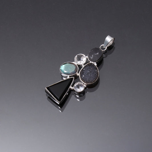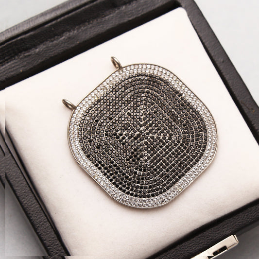 Black Spinel & White CZ Silver ( Oxidized ) Pendant