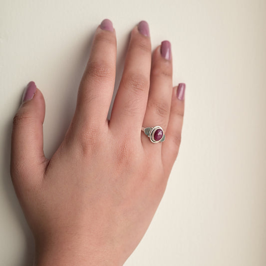 Red Ruby Silver Ring ( Valentines Day Gift )