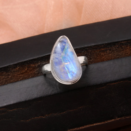Rainbow Moonstone Silver Ring ( US- 6 3/4 Ring Size )