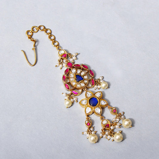 Exquisite Elegance: 925 Silver Maang Tikka with Simulated Sapphire, Diamond & Ruby