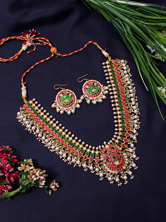 Faux Emerald, Pearl, and Ruby 925 Silver Jewelry Set – Elegant Necklace and Earrings Ensemble