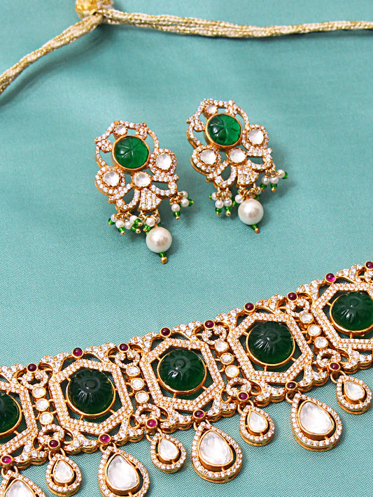 Faux Emerald & simulated Diamond Jewelry Set with Faux Pearls: Affordable Luxury for Every Occasion