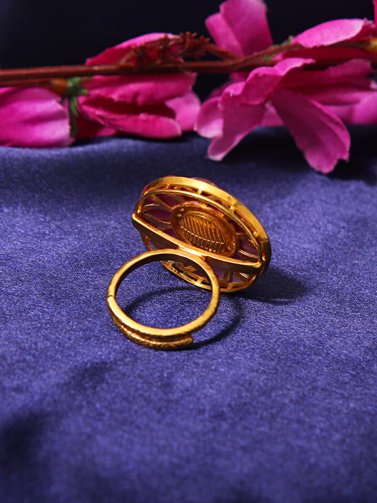 Elegance: Simulated Emerald & Faux Diamond Traditional Indian Ring (Adjustable