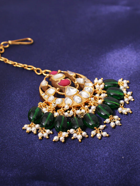 Enthralling Ethnic Maang Tikka : Simulated Ruby, Faux Diamonds & Quartz Emerald