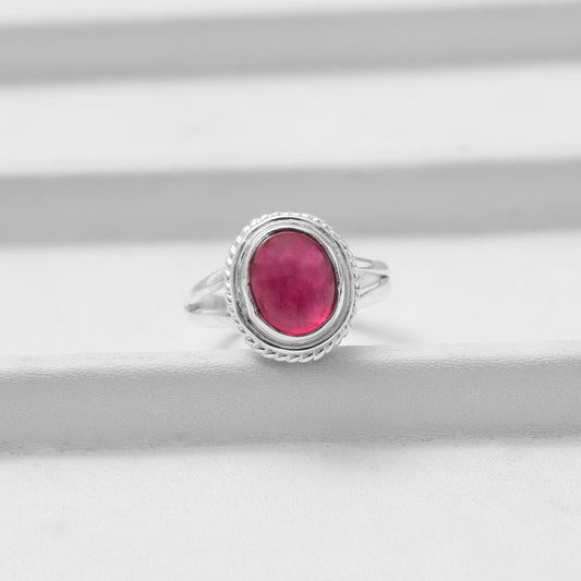 Red Ruby Silver Ring ( Valentines Day Gift )