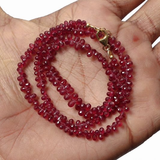 Rare Ruby Beaded Teardrop Necklace with Silver Lock