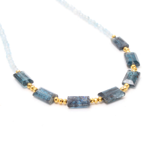 Classic Multi Gemstone Beaded Necklace-Natural Kyanite/ Hematite /Aquamarine Necklace.