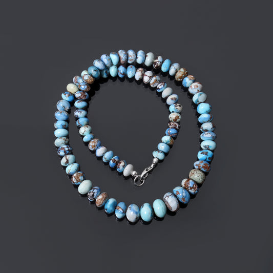 Natural Golden Hills Blue Turquoise Necklace - AAA Grade 7-11mm Rondelle Beads - Genuine Lavender Blue Gemstone Jewelry - GemsRush