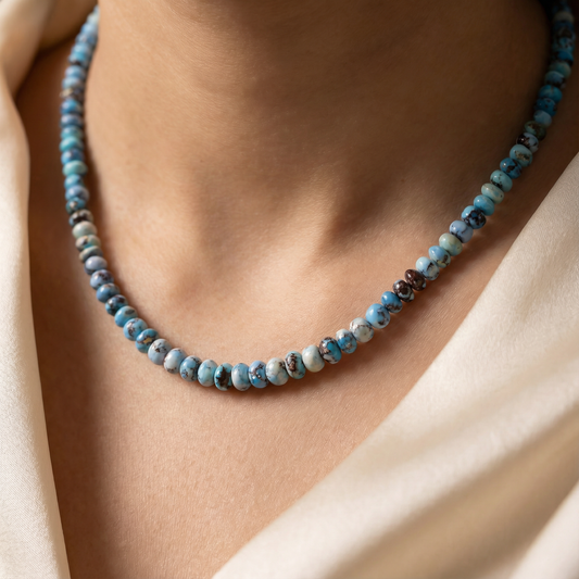 AAA+ Golden Hills Turquoise Necklace – Natural Blue Turquoise Beaded Necklace 4.5–7mm | Minimalist Gemstone Jewelry