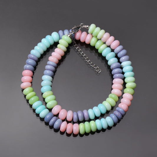 Pink Blue Opal Beaded Necklace, Adult Candy Necklace, Gift For Sister/Brother