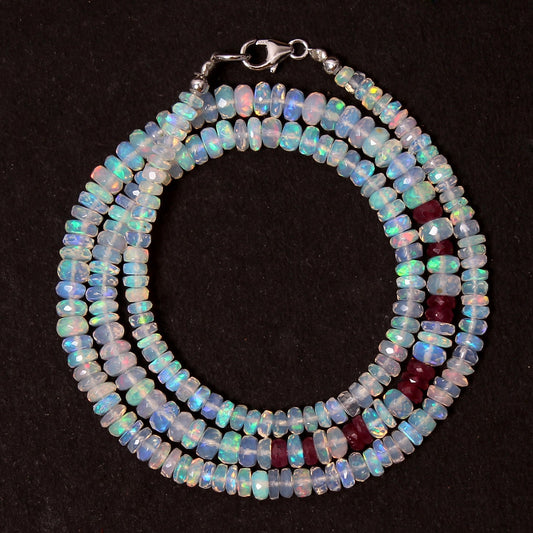 Ethiopian Opal & Ruby Beaded Necklace, Anniversary Gift For Her