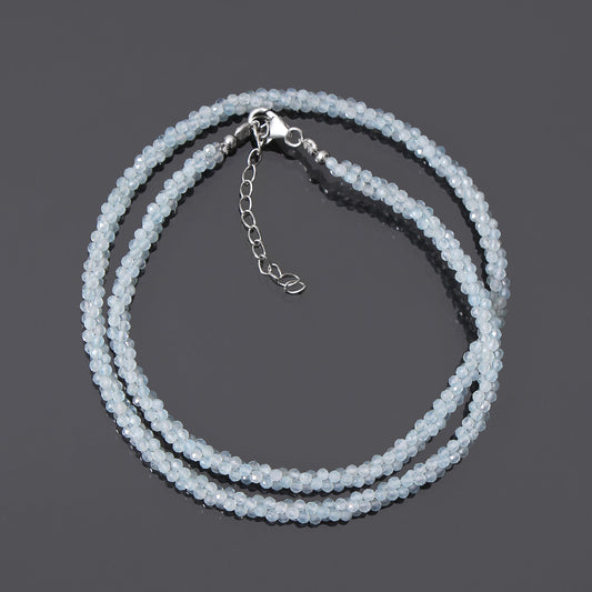 Natural Aquamarine Beaded Gemstone Necklace , Faceted Round Twisted Necklace , Gift For Women.
