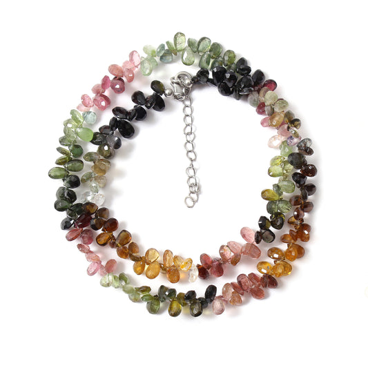 Natural Multi Tourmaline Beaded Necklace , Faceted Pear Tear Drop Beaded Necklace , Gift For Women .