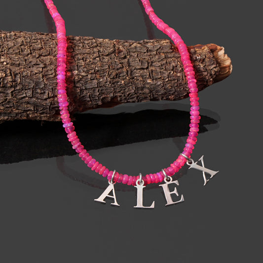 Pink Ethiopian Opal Personalized ALEX Necklace with SIlver Alphabet Charm
