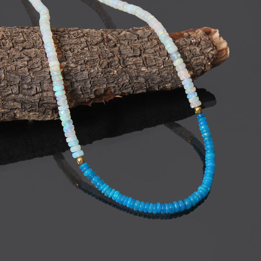 Natural Blue White Ethiopian Opal Gemstone Beaded Necklace