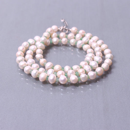 Pearl And Emerald Beaded Necklace | Beauty of Pearls having Sterling Silver Chain