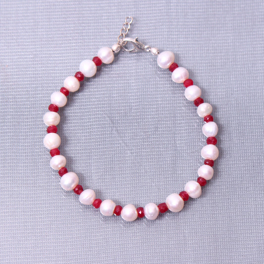 Mesmerizing Ruby and Pearl Bracelet - One of a Kind Bracelet Unique Ruby Pearl Collection