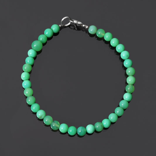 Chrysoprase Gemstone Beaded Bracelet strung on Sterling Silver Wire with Lock