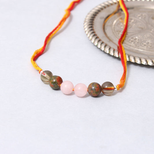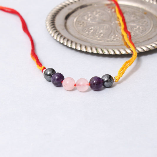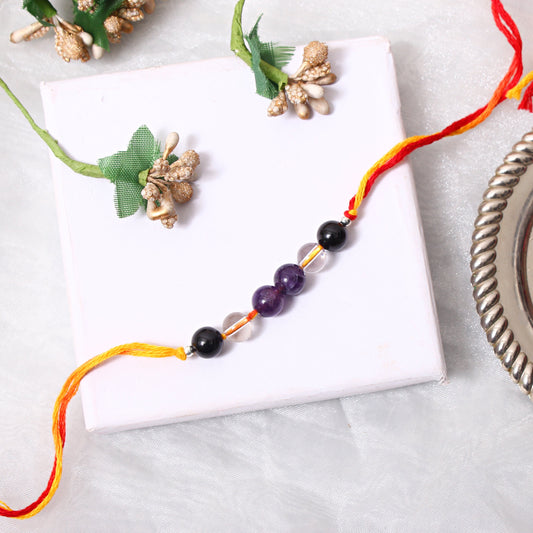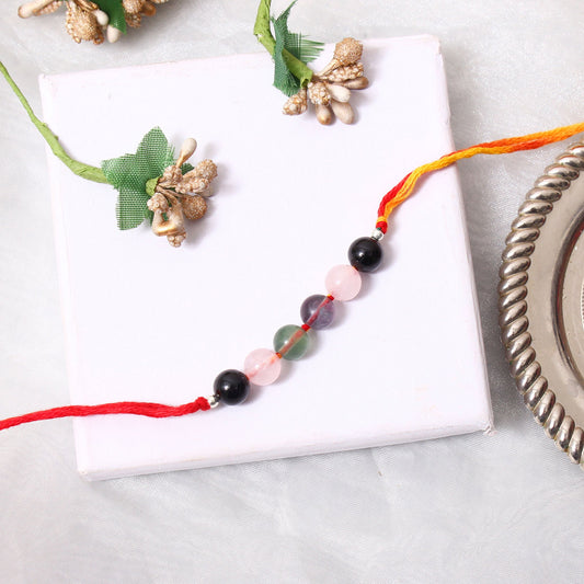 Special Gemstone Rakhi for Brother: Handcrafted with Natural Round Gemstones