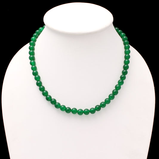 Green Onyx Beaded Smooth Round Gemstone Necklace