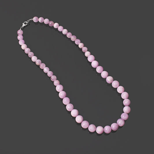 Kunzite Round Beaded Necklace with 925 Silver Lock
