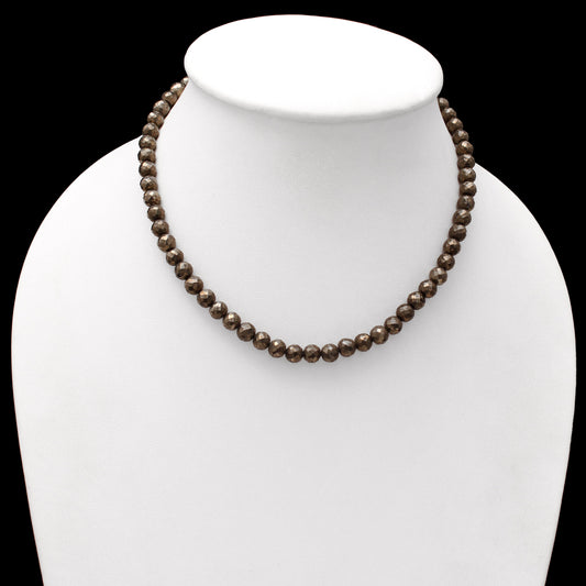 Faceted Pyrite Gemstone Beads Silver Necklace