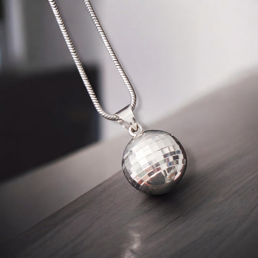 Disco Ball Sterling Silver Pendant | Silver Ball Pendant - Perfect Gift