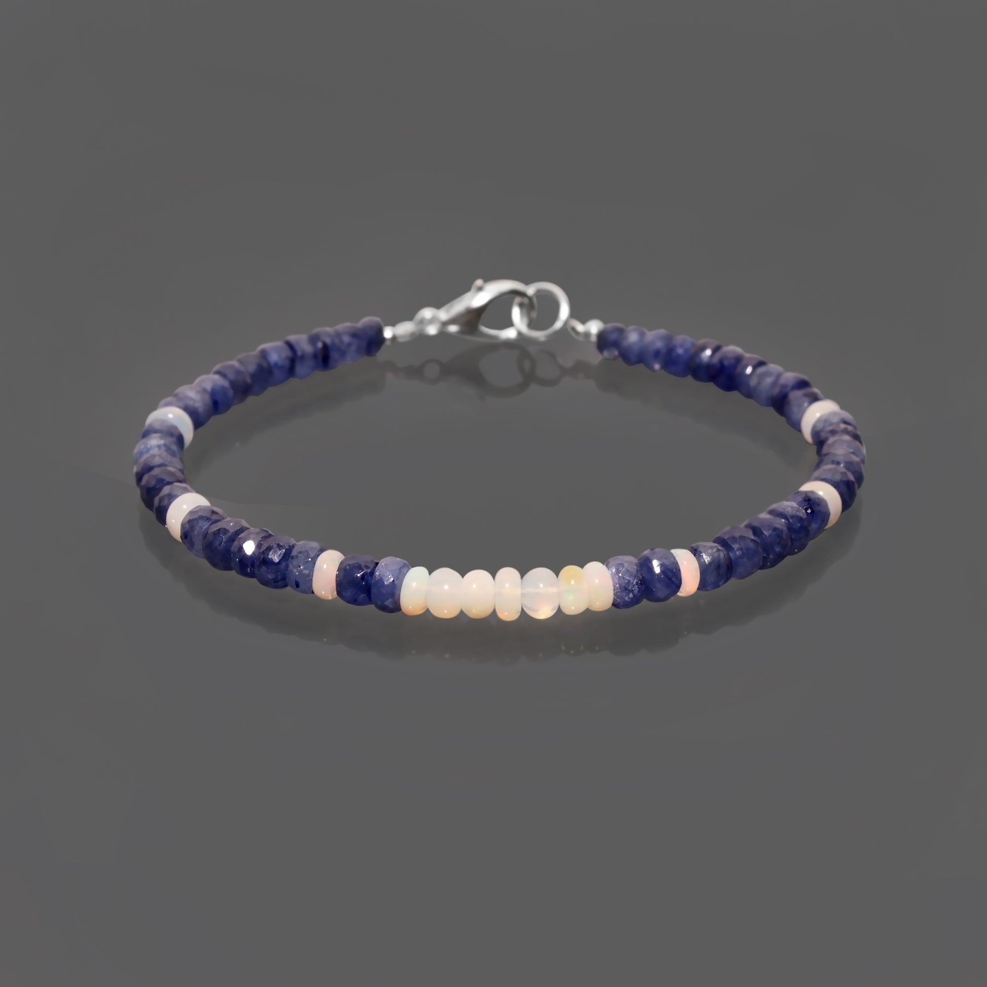 Natural Sapphire and Ethiopian Opal Bracelet: Handcrafted with Premium Quality Gemstone and Silver Lock